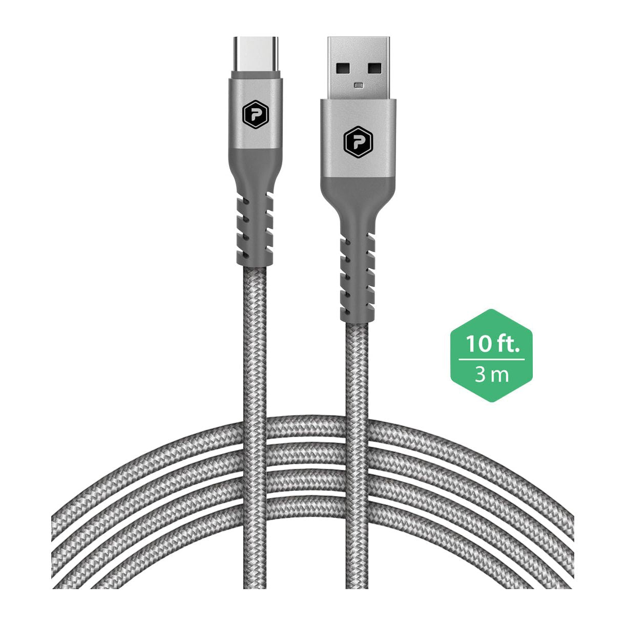 PowerPeak 10ft. Braided Nylon USB-A to USB Type-C Charge & Sync Cable - Silver