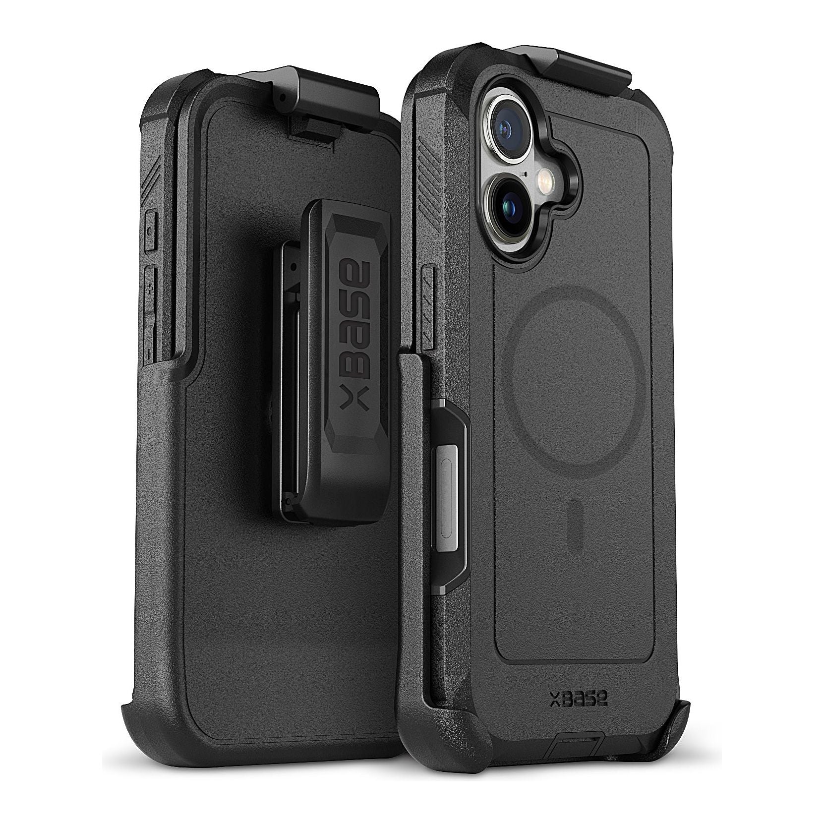 XBase IPhone 16 (6.1) - Boulder MagSafe Heavy-Duty Co-Molded Rugged Protective Case W/Belt Clip Holster- Black